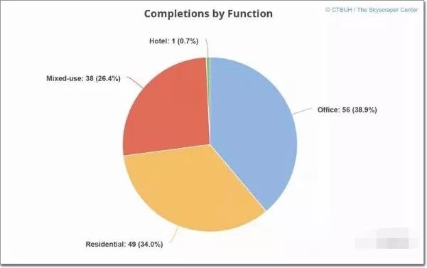 該報告確定的其他趨勢包括將計劃類型從全部辦公室改為混合用途和住宅大樓。2016年全部完工的占52%,全部辦公樓僅占今年總量的39%。