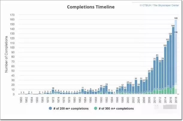 據(jù)報道,2018預(yù)計將成為另一個創(chuàng)紀(jì)錄的年份,其中兩座500米以上的建筑預(yù)計完工,天津高銀金融117大廈和北京529米高的中國尊大廈。