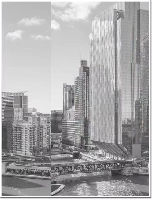 在芝加哥北河畔的新摩天大樓,該項目的特征是它獨(dú)特的外觀,創(chuàng)建了一個戲劇性的錐形底座。