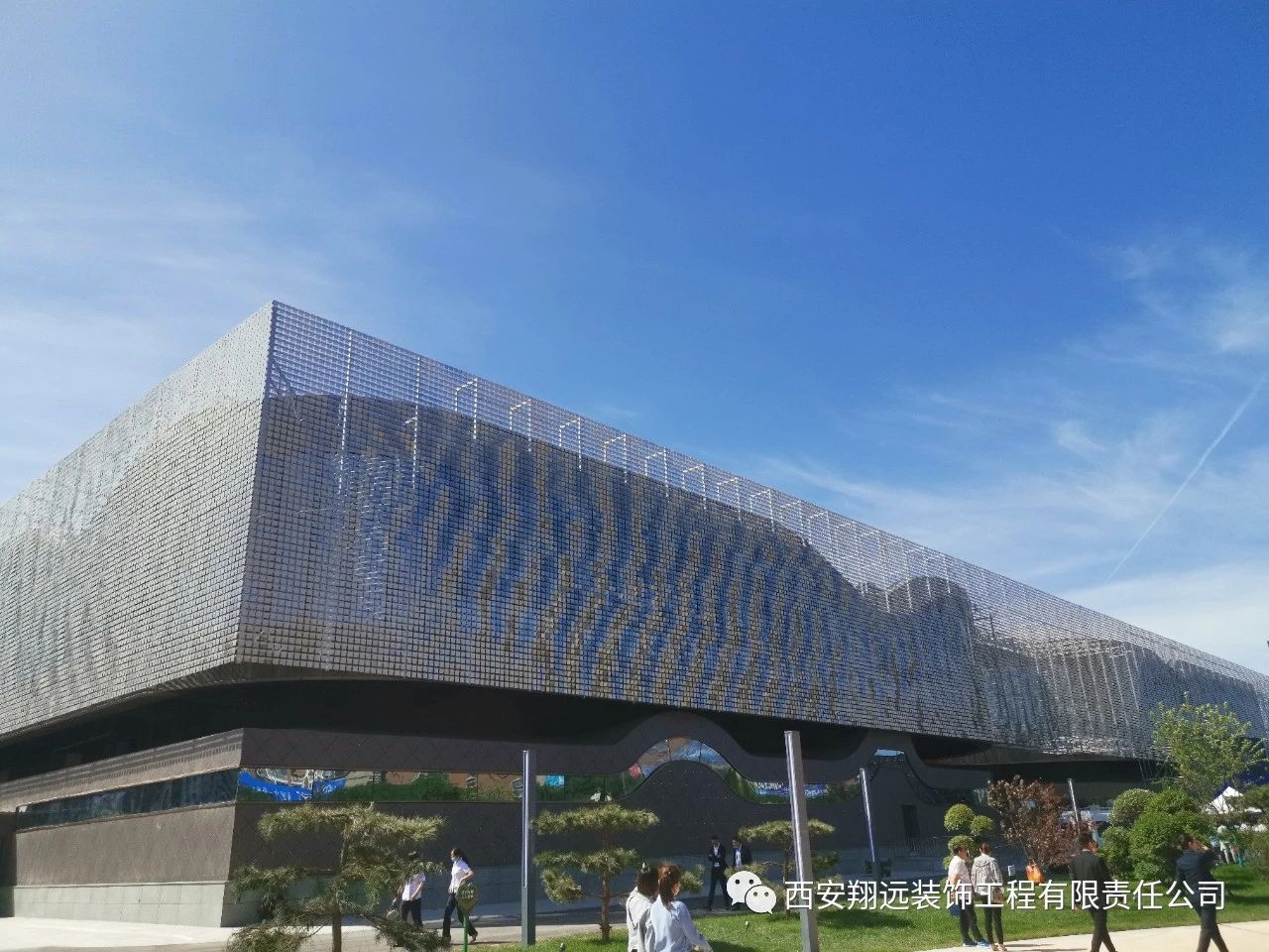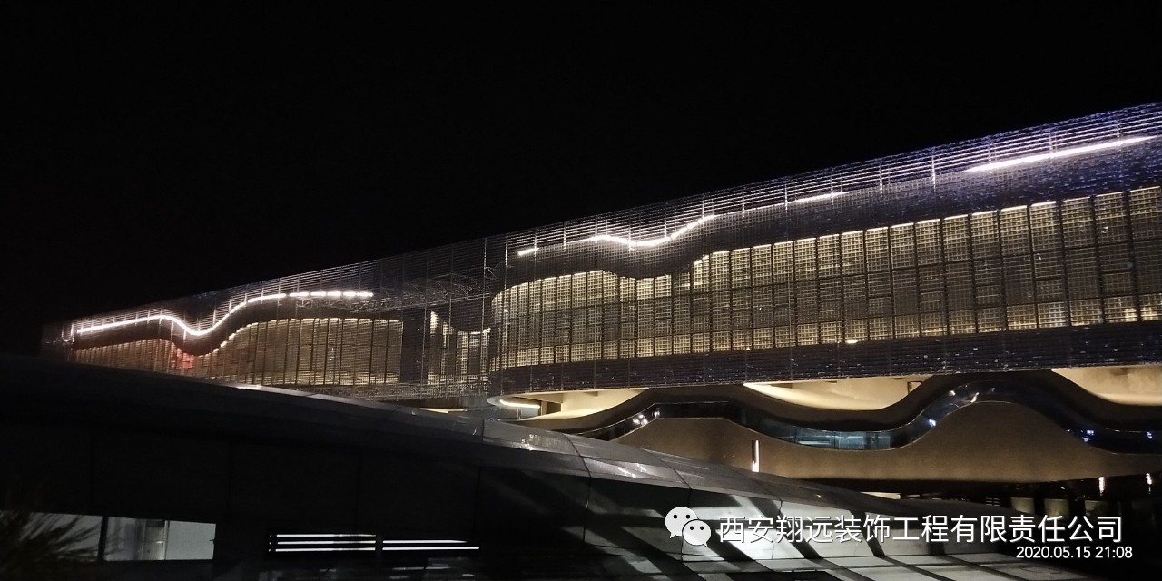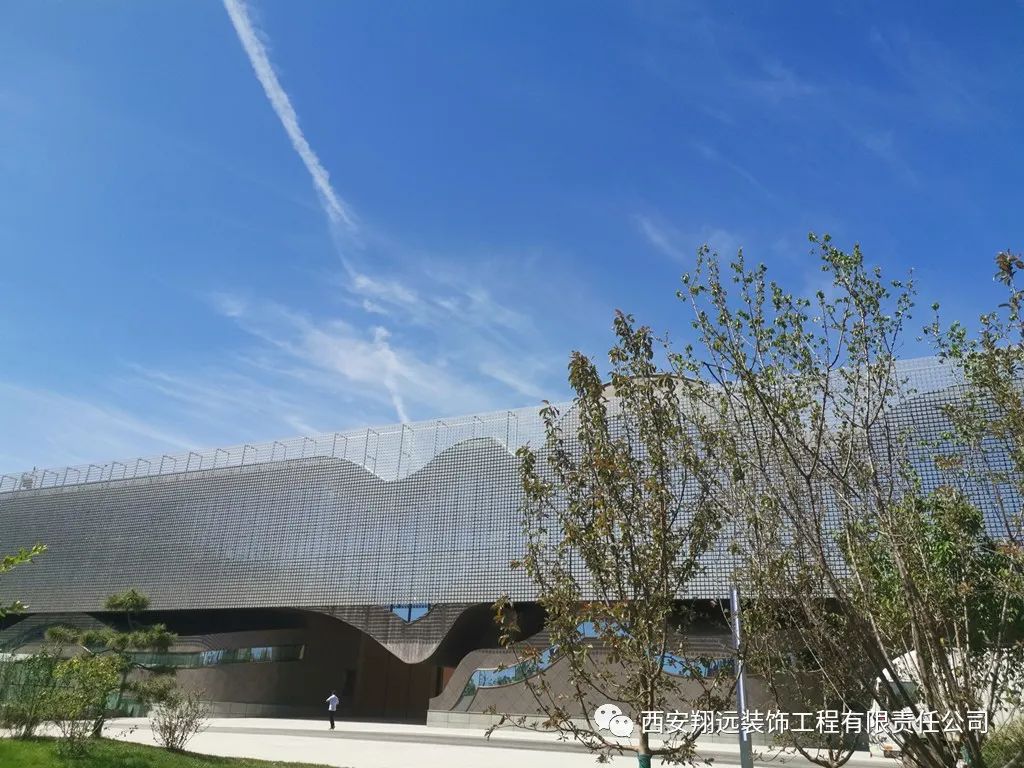 我司承建的風動幕墻由11萬余件金屬片組合而成,是目前我國西北僅有、國內maximum的風動幕墻建筑。清風徐來,如水波微動,以流動的曲線寓意山水銅川。