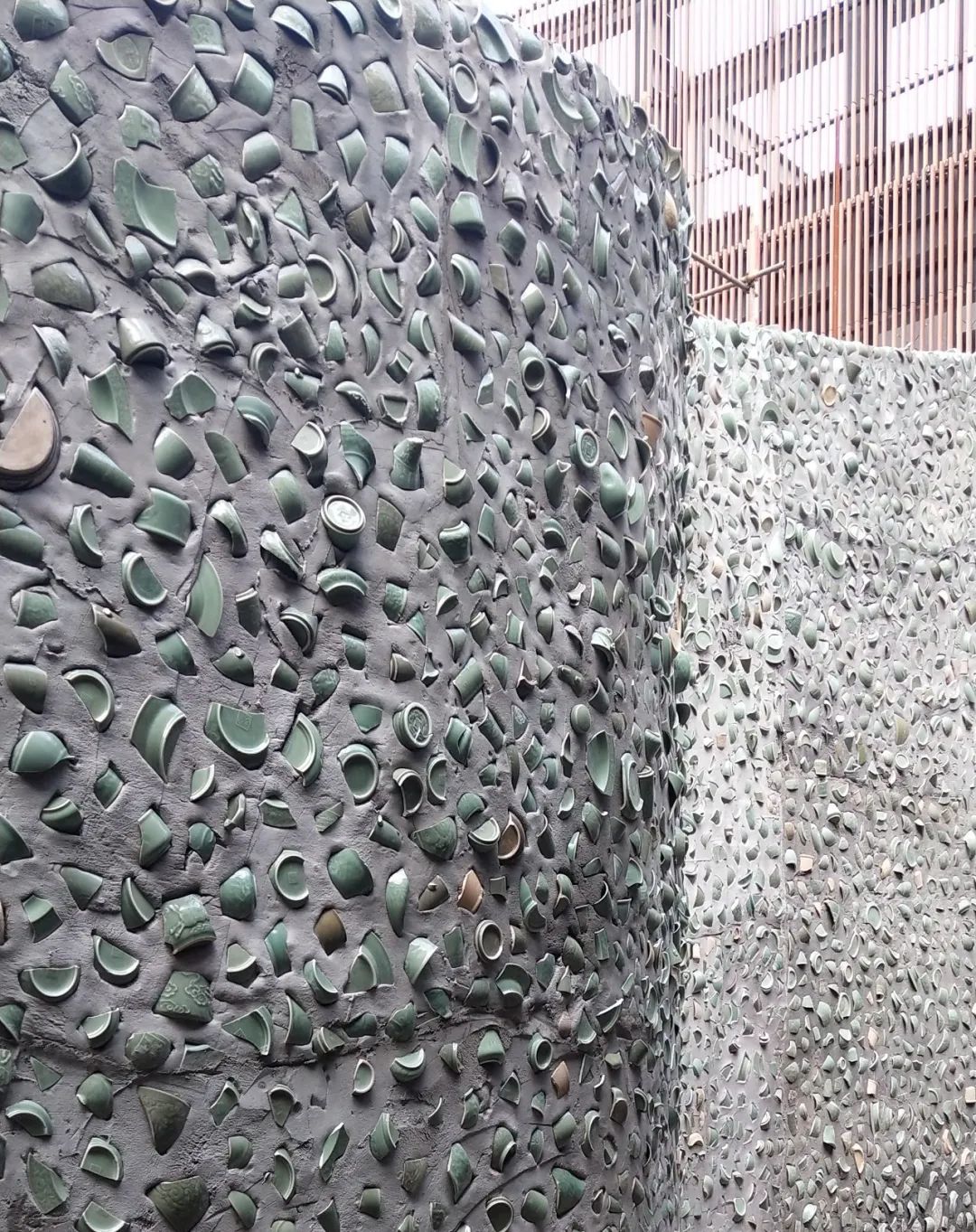 內墻貼面是由色彩渾然,風格古樸的陶板、陶棍、陶磚依次排列裝飾,盡顯陶文化古城的魅力。充分體現(xiàn)“十里窯場”耀州古韻。