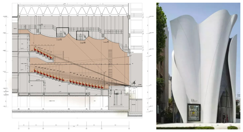 在設計材料選用方面,為充分表達出設計構想和最大化滿足聲學要求,設計師排除了傳統材料與工藝做法,而采用了容易造型、不易變形且聲學表現優異的GRG這一新型材料。
