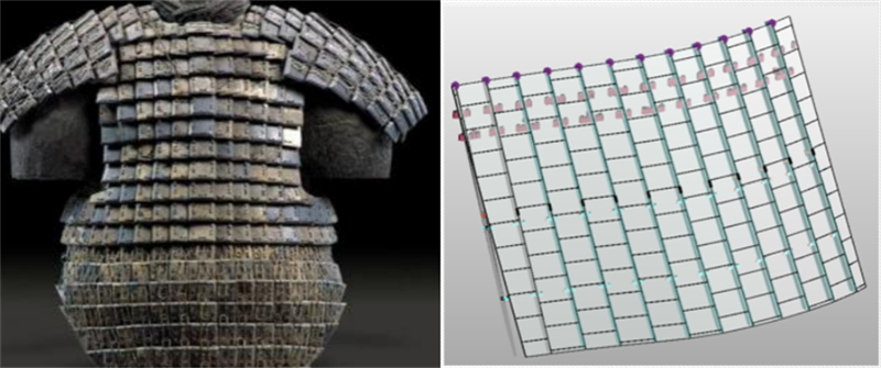 本項(xiàng)目石材幕墻具有視覺效果震撼、立體感強(qiáng)、安裝調(diào)節(jié)方便、防水性能好、成本低的開縫疊加式背栓石材幕墻系統(tǒng)。具有良好的創(chuàng)新性、實(shí)用性。石材排版及布置方式獨(dú)特,層次豐富。有效解決了傳統(tǒng)石材幕墻單調(diào)的排版方式,使得石材幕墻視覺效果更加立體,像在建筑上雕刻出的藝術(shù)品。其發(fā)明靈感來自秦朝士兵鎧甲鱗片。