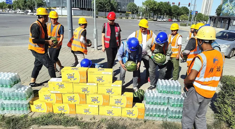 炎炎夏日,目前正值高溫天氣,酷熱的天氣給堅(jiān)守在一線工地的工人師傅們帶來更多的挑戰(zhàn),汗水一次又一次的浸濕了身上的衣服,西安翔遠(yuǎn)裝飾工程有限責(zé)任公司是一個(gè)注重人文關(guān)懷的大家庭,實(shí)時(shí)關(guān)注高溫天氣還在戶外工作的工人們身體健康狀況和生命安全,為在一線高溫工作的工人們送去夏日清涼、送去關(guān)懷。