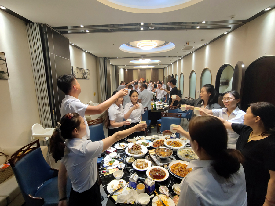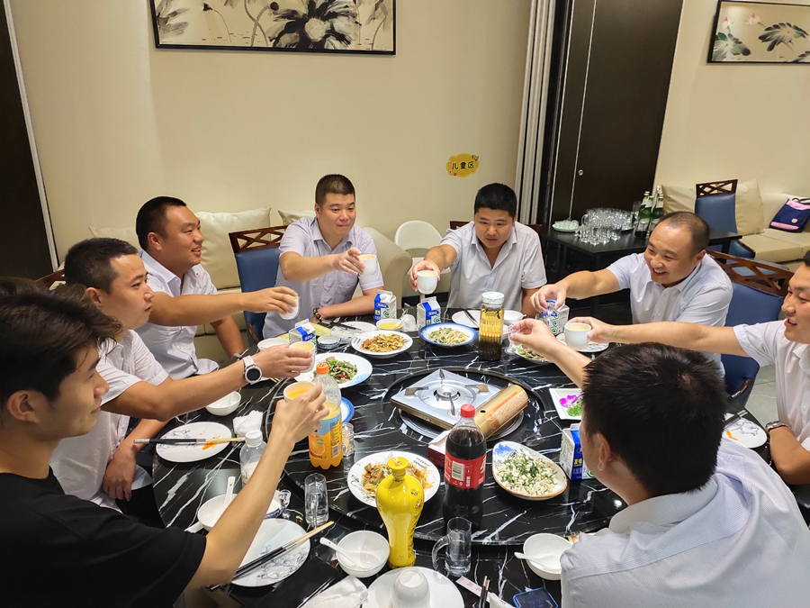 會議結束后,公司給大家安排了豐富的晚餐,平時分布在各項目上的人員都回來了,借此機會,大家歡坐一起,互相交流彼此項目上的經驗及遇到的困惑,大家共同舉杯,傾吐心聲,暢聊、暢飲,聊未來的規劃,聊公司未來的發展,每個人眼中都充滿光芒,相信在董總的帶領下,翔遠公司會越來越壯大,我們每個人追隨公司的腳步也就更加堅定,最后祝賀我們第三季度全員大會圓滿結束。