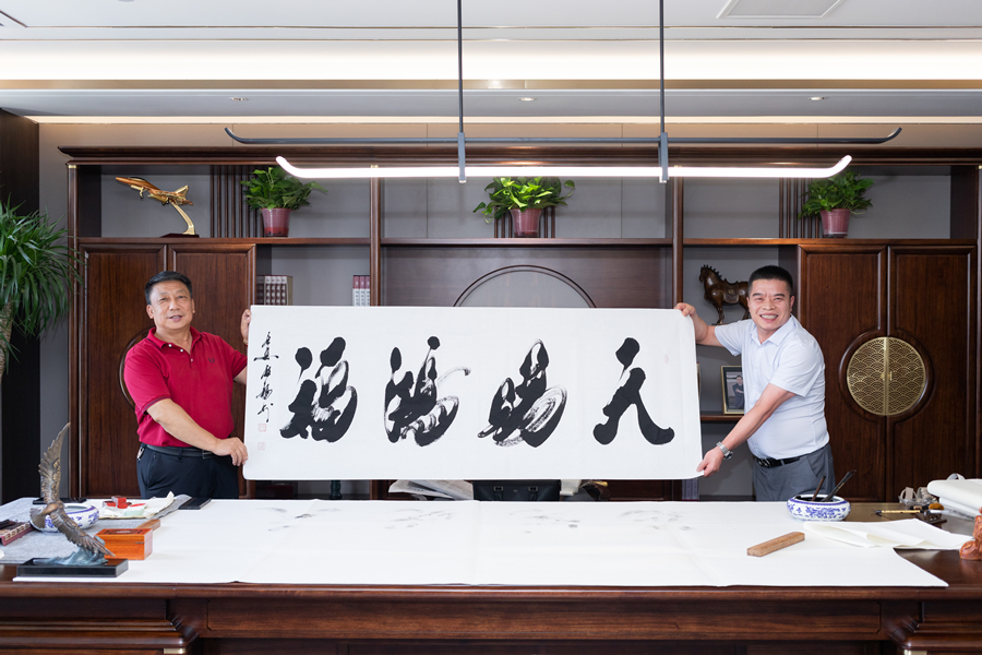 丹青吐彩歌盛世,翰墨飄香譜華章。喬遷當日,陜西省人大新聞中心藝術顧問、陜西省書畫藝術研究院副院長薛殿龍,國家一級美術師、中國山水畫研究院副院長鐘山石,西安市裝飾業協會會長張永安,用書畫藝術創作的形式為翔遠送上祝福。