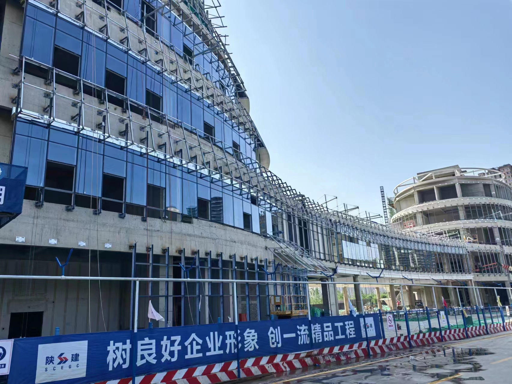 雁南公園服務配套設施項目是我司重點工程之一,該項目施工任務重,工期要求緊,公司領導高度重視,所有人員全力以赴為其質量、工期、進度保駕護航;在公司領導的帶領及支持下,項目部迅速組織勞務隊伍進場,現階段已完成圖書館玻璃幕墻3000余平米,安裝進度達到80%,鋁板龍骨完成9000余平米,安裝進度達到90%,文化館玻璃幕墻2000余平米,安裝進度達到60%,鋁板龍骨完成1500余平米,安裝進度達到15%,在今后的施工中,項目部及作業人員發揚吃苦耐勞精神,克服種種困難,戰勝各種不利因素,積極推進施工進度。