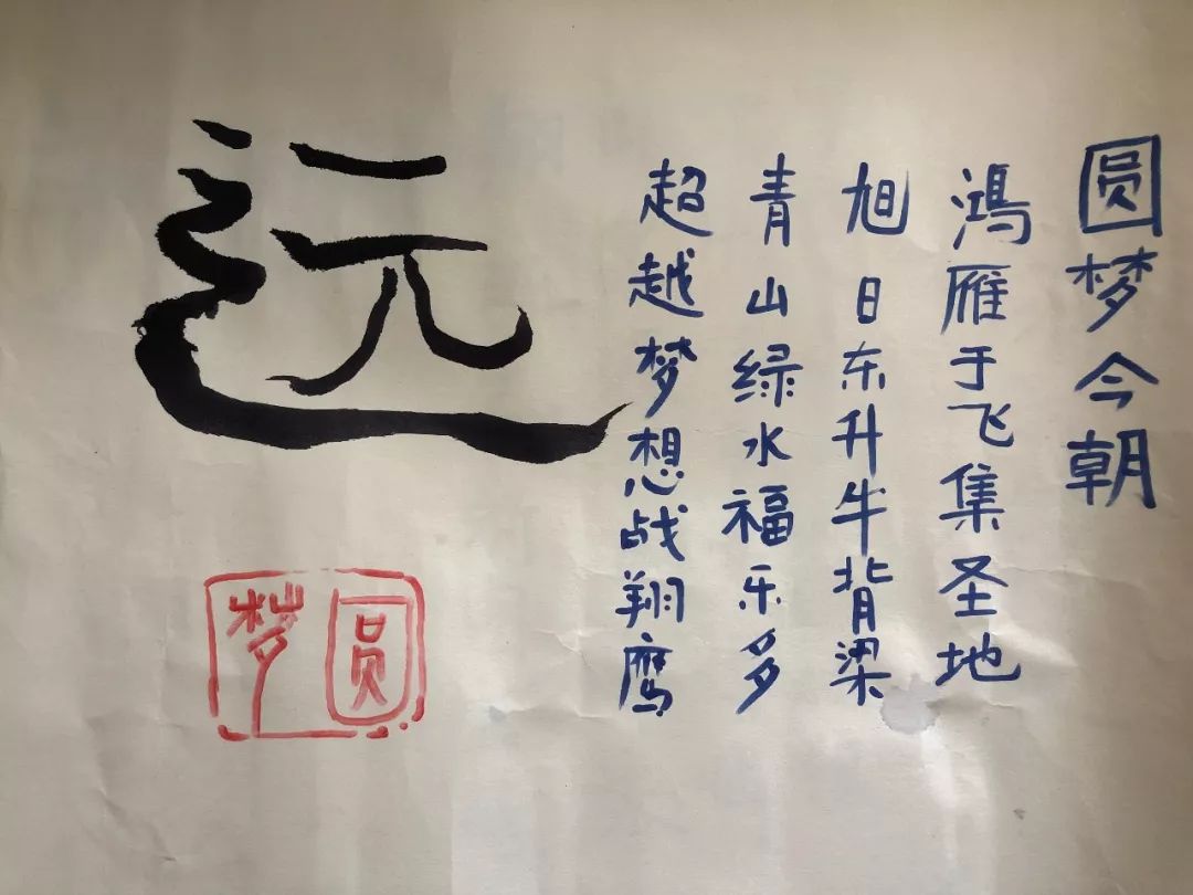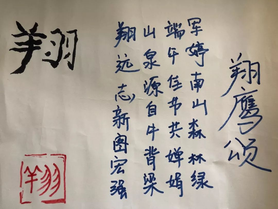 直徑1.5m圈外,每人一根繩子,用清水在地面上練習(xí)。在團(tuán)隊(duì)比拼時(shí),要求合力在教練派發(fā)的白紙上完成“翔”和“遠(yuǎn)”,并以此字為主題,結(jié)合團(tuán)隊(duì)成員每個(gè)人的名字完成一首七言絕句,綜合表現(xiàn)得分高的隊(duì)伍獲勝。