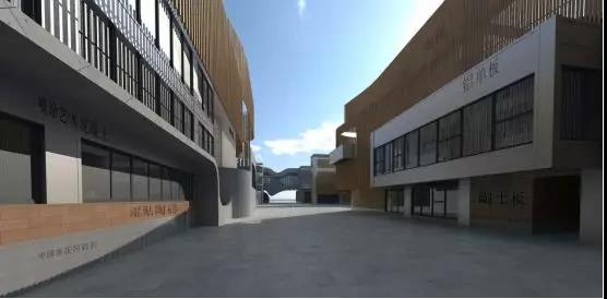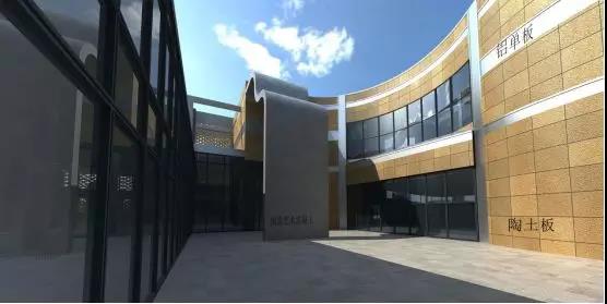 陶土板幕墻主要分布于博物館的十字內街、內庭院等位置。陶土板采用20mm厚定制陶土板,完成面距主體結構250mm,陶土板總共設計為三種機理,陶土板通過鋁盒裝飾條來劃分進行區域的劃分。