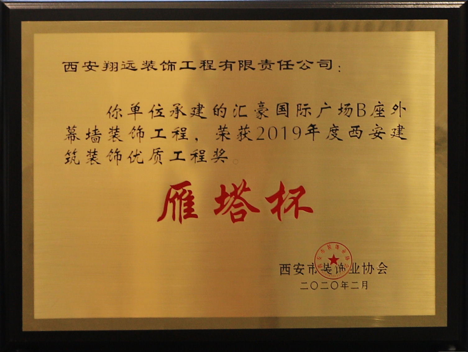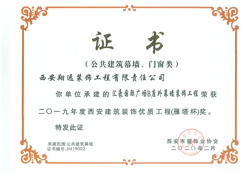 【喜報(bào)】熱烈祝賀我司榮獲“2019年度西安建筑裝飾優(yōu)質(zhì)工程獎(jiǎng)(雁塔杯)、先進(jìn)企業(yè)”等多項(xiàng)榮譽(yù)